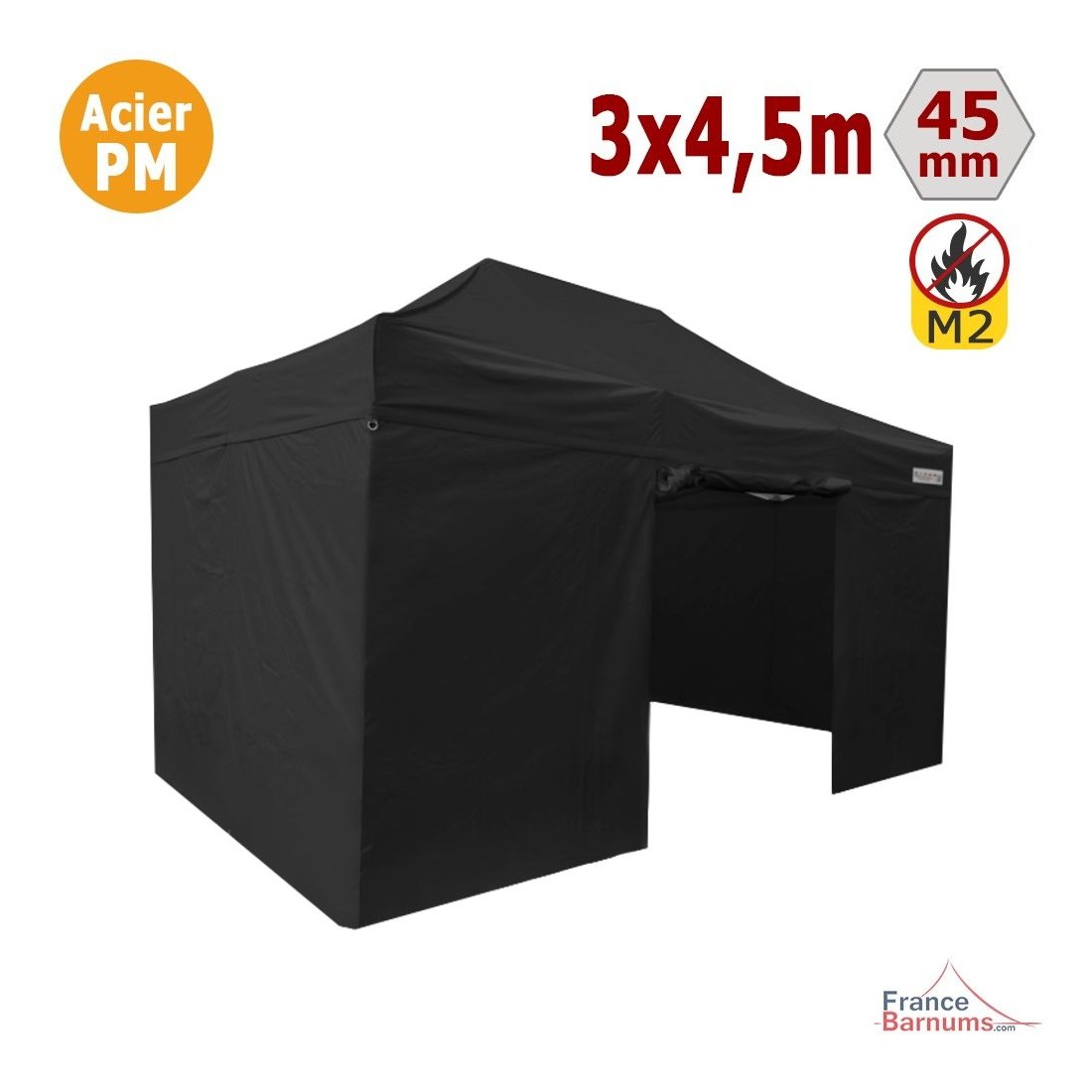 BARNUM ACIER PREMIUM 3×4,5m Pack murs – Noir